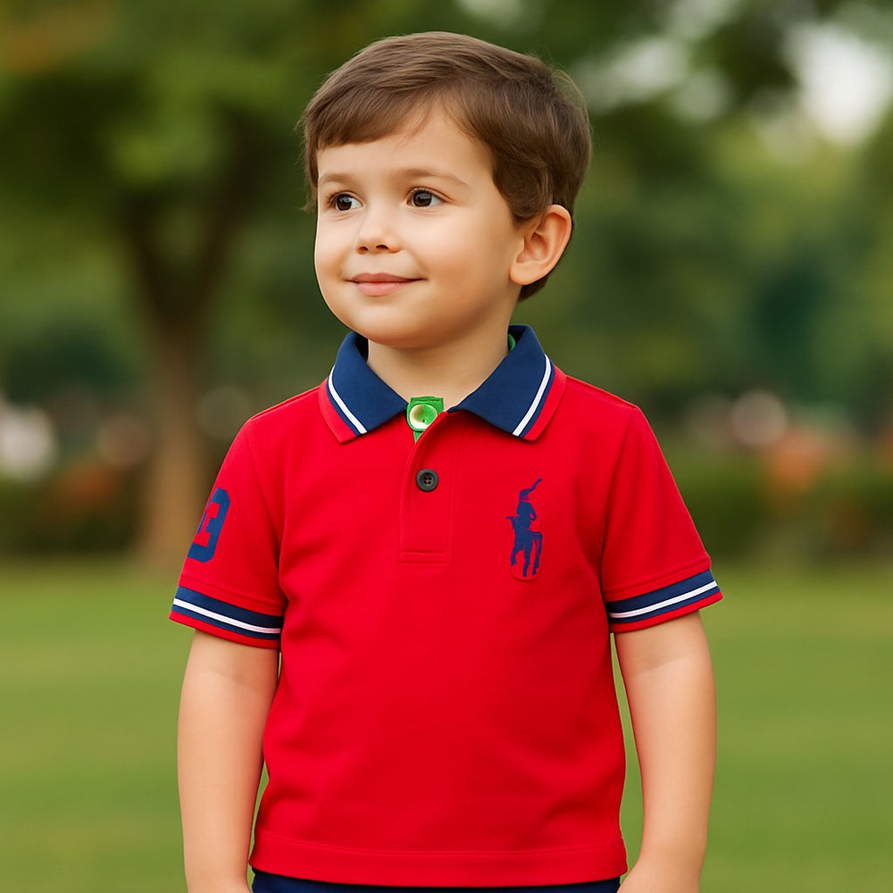 Add a pop of color to your child's wardrobe with this vibrant red polo shirt! Perfect for casual outings, school days, or family gatherings, this shirt combines comfort and style effortlessly.